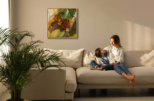 This painting is more than decoration; it’s a source of warmth and happiness, evoking nostalgia and sparking heartfelt conversations. If you’ve been searching for art that fills your home with meaning, "Piggyback Baby" is ready to bring its charm into your space. Don’t miss your chance to own this unique tribute to nature’s quiet beauty.